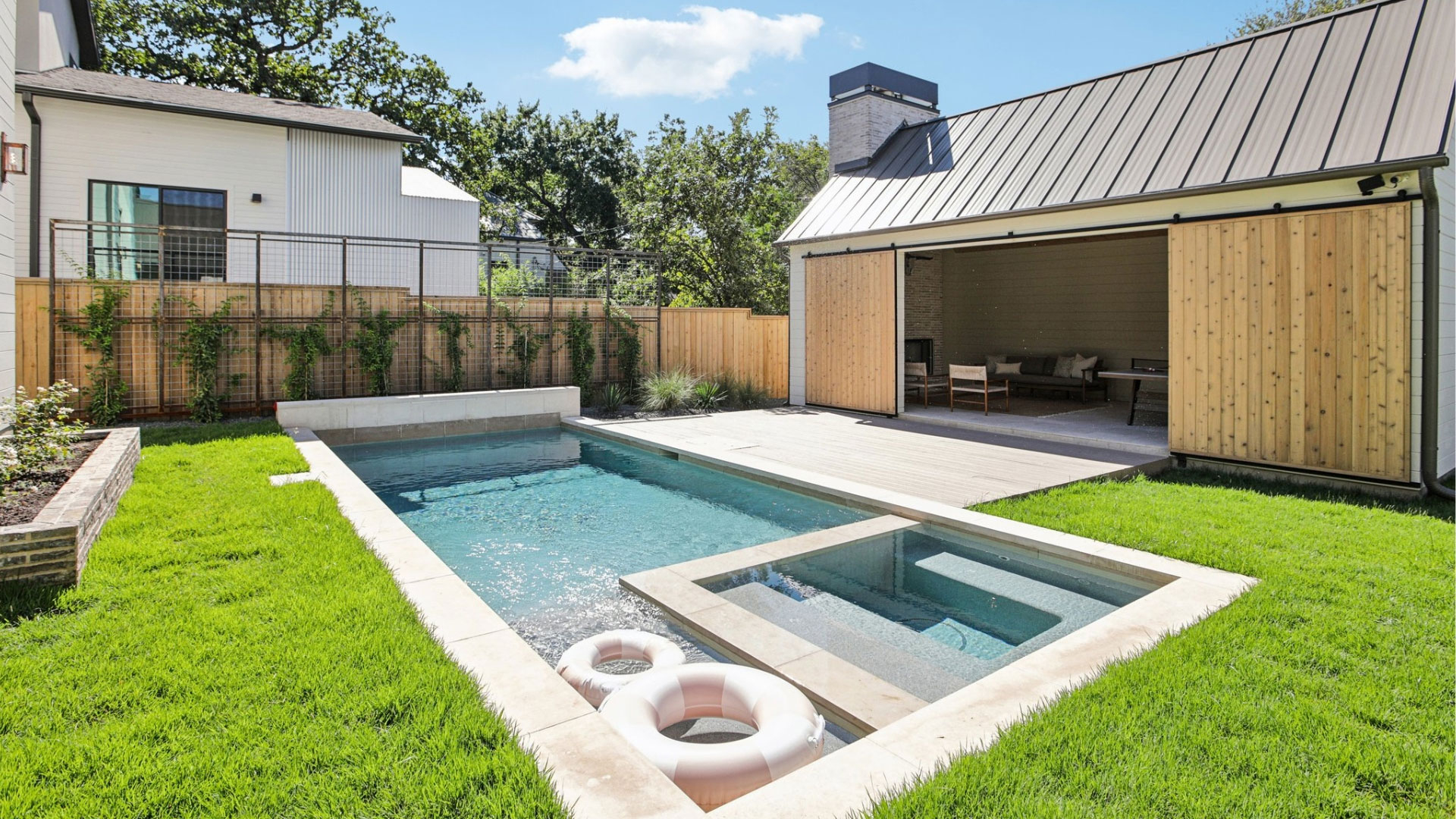 An outdoor clubhouse seamlessly connected to the pool creates the ideal space for entertaining.
