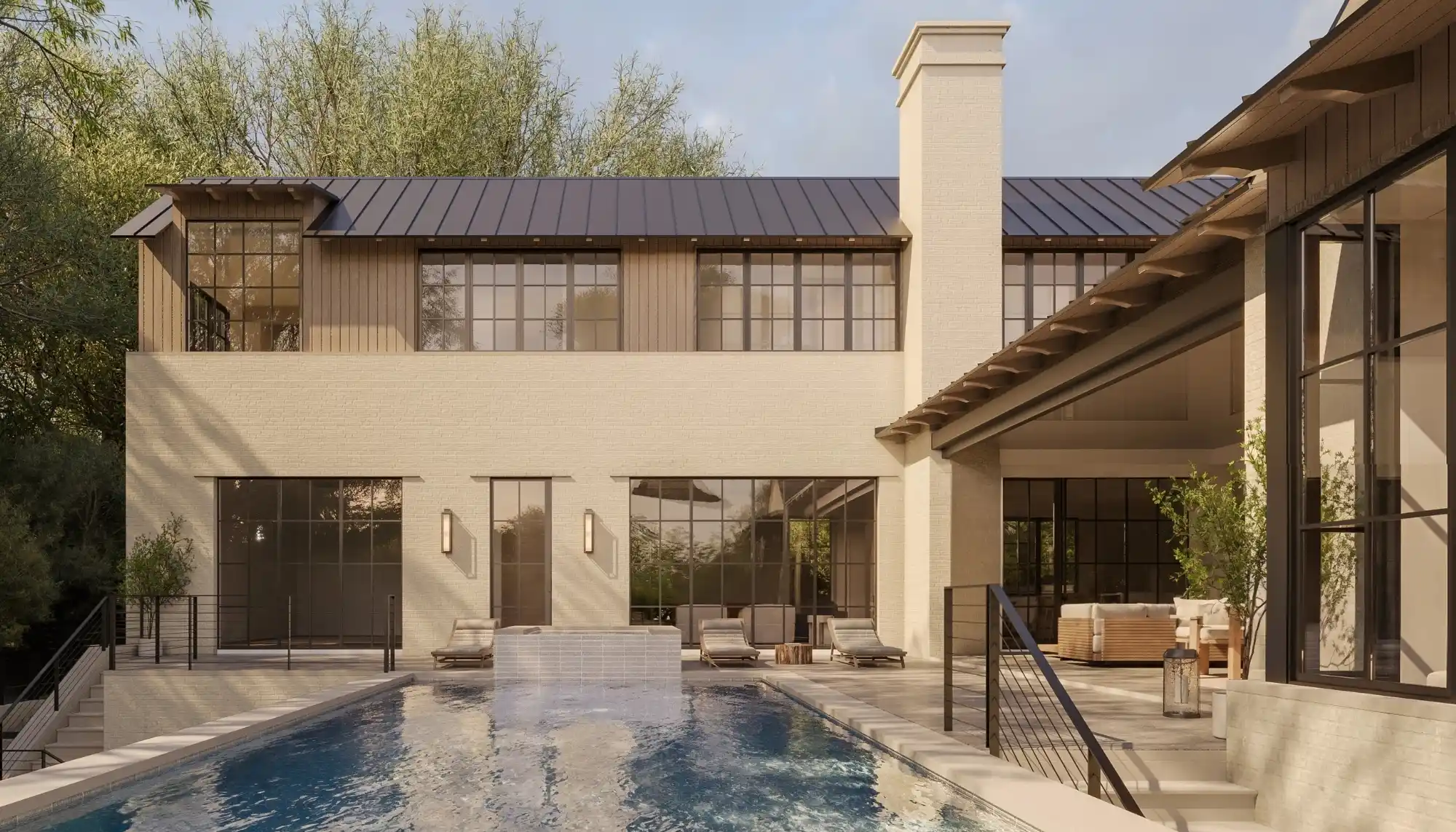 Tucked into the Rollingwood hillside, this John West Stoddard and ByBritt Design collaboration balances the grandeur of a large estate with the intimacy of home. Rustic timber beams and brick arches ground the space, creating a timeless backdrop for life’s milestones.