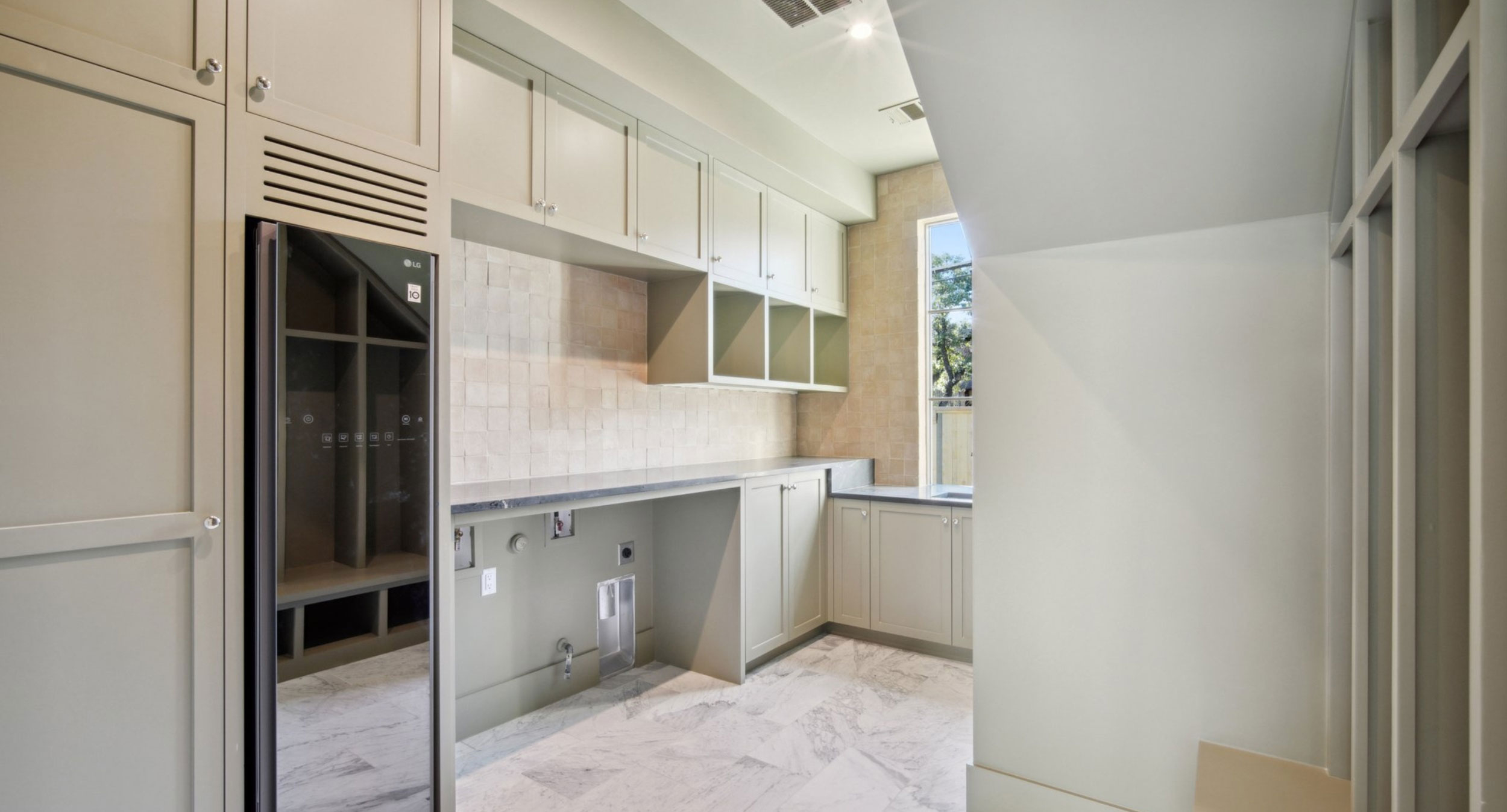A subtle concrete texture with white paint that brings the outside in