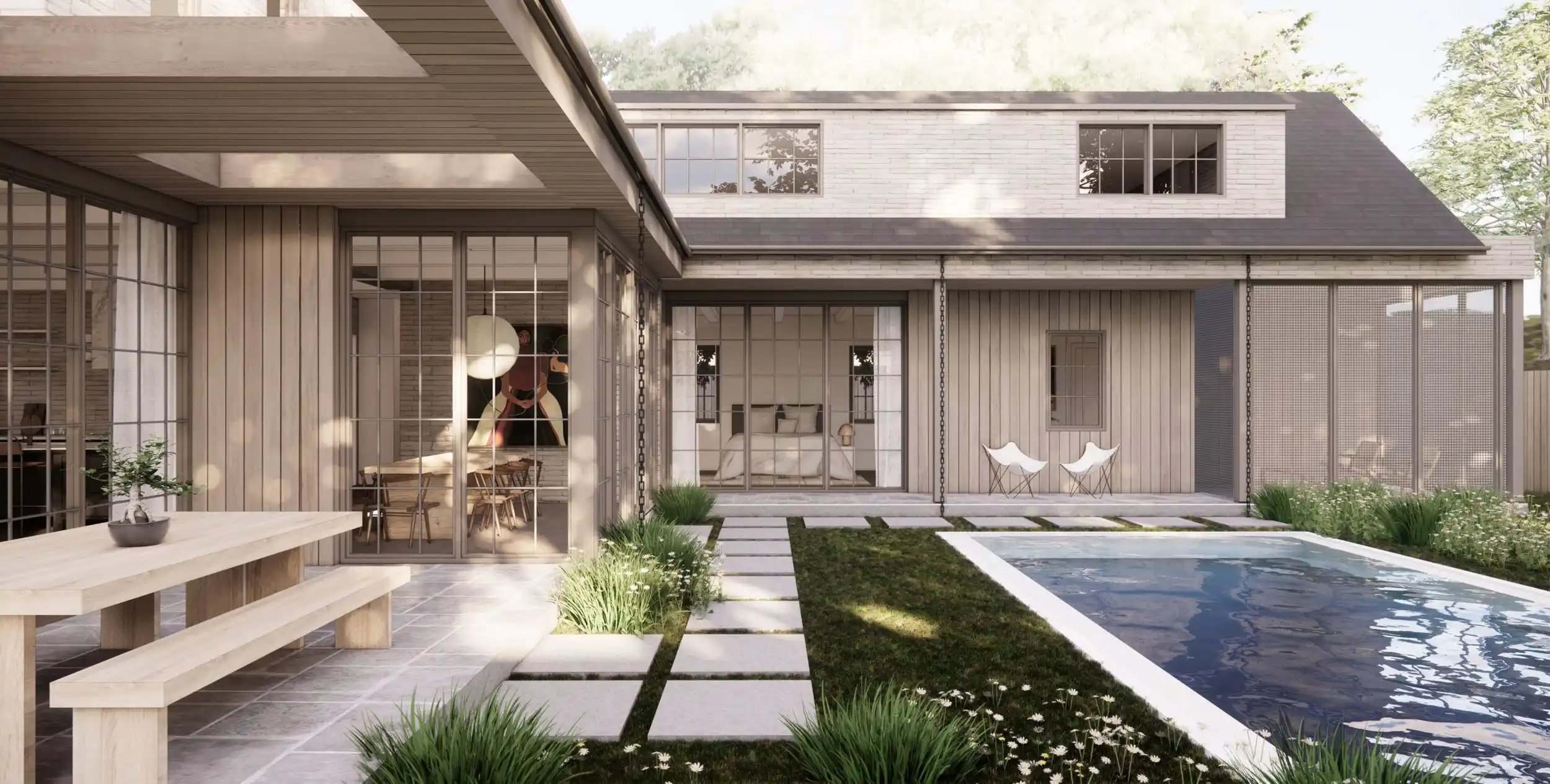 Our work is grounded in expertise and guided by thoughtful intention. We source distinctive materials, pairing them with an approach that harmonizes architecture and nature to create spaces of quiet beauty and calm.